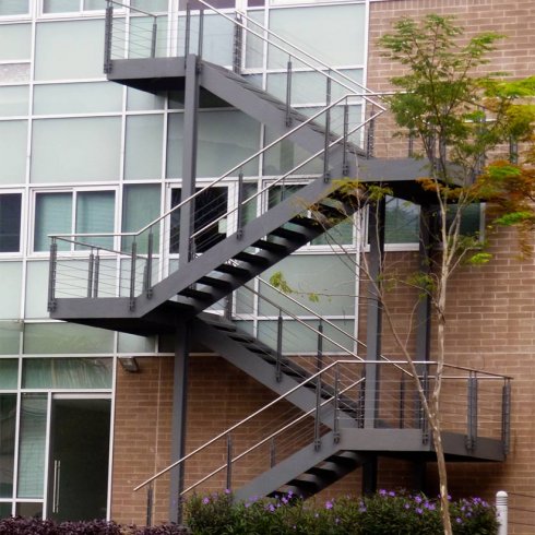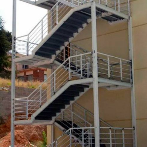 Desarrollamos proyectos de escaleras a medida, como medios de salida de incendio, para edificios existentes o en construcción, de usos públicos como hoteles, escuelas, colegios, fabricas, depósitos, oficinas o viviendas y adecuarlos a las nuevas reglamentaciones.