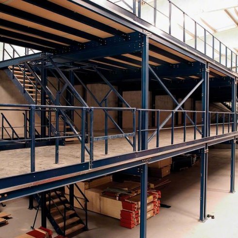 El mezanine es una estructura semi-permanente que se instala usualmente entre dos plantas , o entre el piso y el techo de una bodega alta. Pueden ubicarse libremente en cualquier lugar, y en algunos casos permiten ser desmontados y reubicados, pueden duplicar el área de trabajo de una bodega y permite habilitar dos áreas de almacenamiento, además de permitir habilitar de igual manera un segundo piso dentro de un área de suficiente altura.